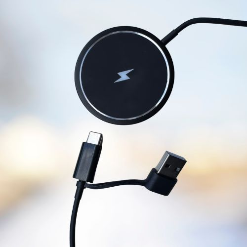 The inductive charging cable allows you to charge your smartphone or other compatible devices wirelessly. Simply place your device on the charging surface and the charging process begins automatically.