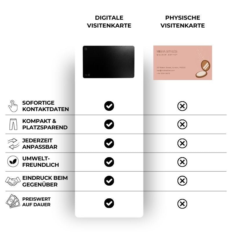 Pioneering technology: The integrated Ntag 216 chip enables effortless data transfer – whether contact details or personalized links. Works seamlessly with Android smartphones and iPhones and ensures maximum compatibility.