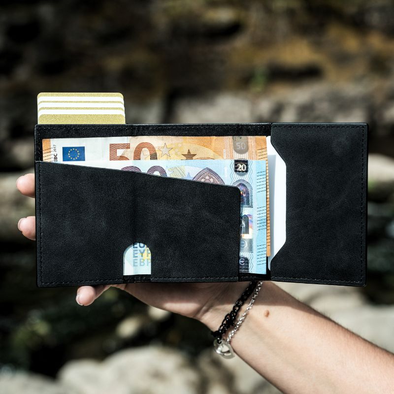 Unser Smart Wallet 3.0 ist mehr als nur ein elegantes Portemonnaie. Mit integriertem RFID-Schutz sorgt diese Geldbörse für den Schutz deiner Kreditkarten vor unerlaubtem Auslesen. Der praktische Kartenschieber ermöglicht schnellen Zugriff auf deine Karten, während das minimalistische Design dieses Wallets es zu einer der besten Geldbörsen für Herren macht.